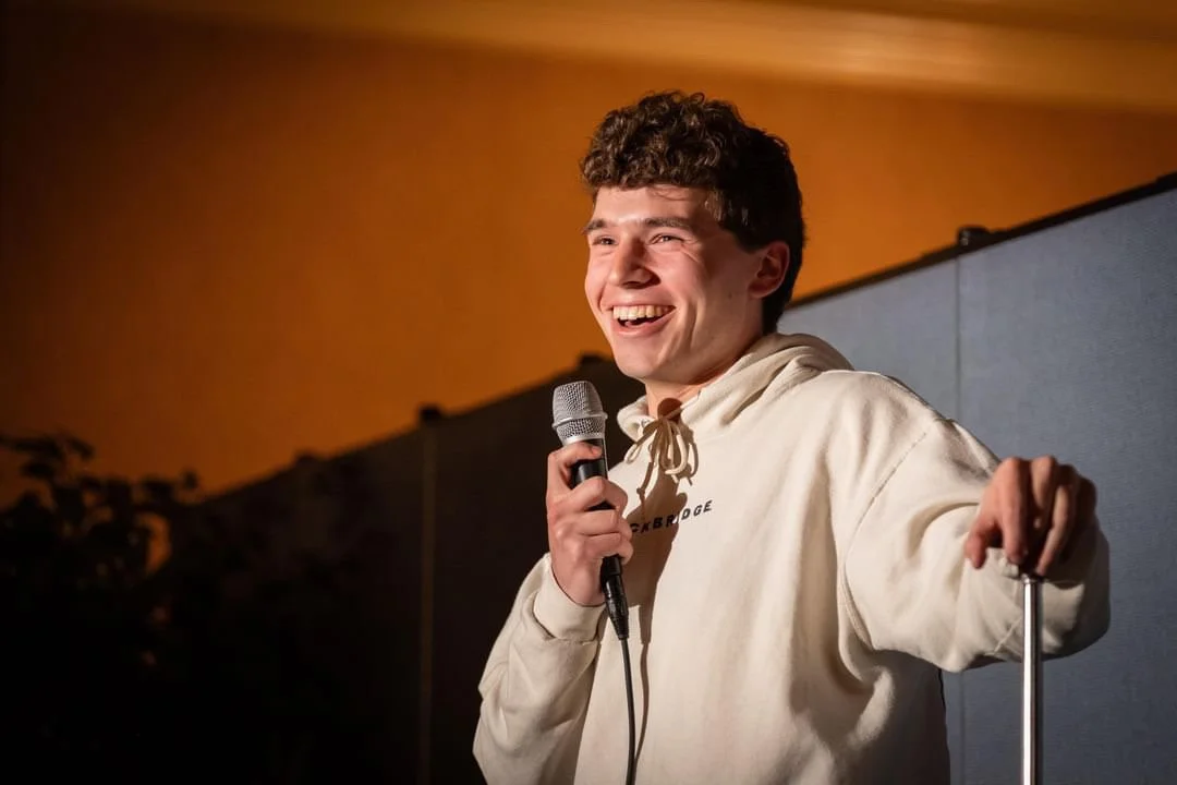 Originally from Louisville, Andrew Gustafson has performed regularly around Blacksburg and Roanoke VA. He’s known for his awkward demeanor, quick punchlines, and sharp dark turns. Whether it’s groan-worthy puns, one-liners, or slightly embellished stories, Andrew will keep you laughing throughout the show.